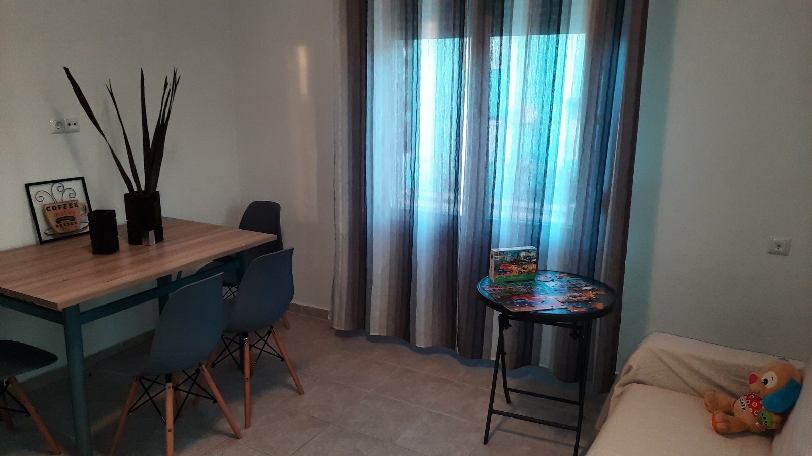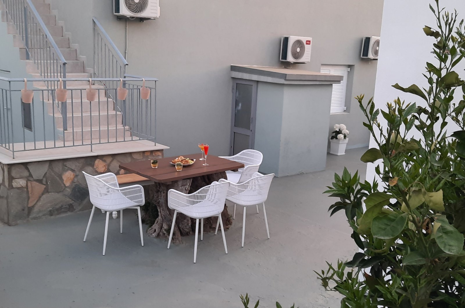 The bathroom comes with a shower, sink, toilet and washing machine. Clean towels and personal hygiene products are always available (toilet paper, liquid soap, soap, hair shampoo, shower gel). The balcony is equipped with chairs and coffee table, with sea views and beautiful sunsets. There are a drying racks for clothing on the balcony and in the garden.