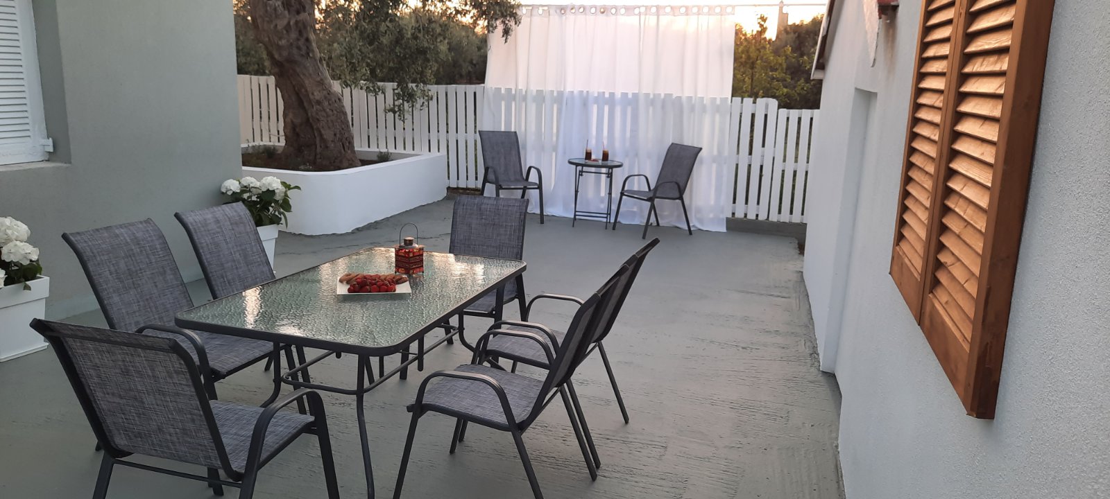 The seperate courtyard is equipped with a multiplied seating, social and dining facilities, sheltered and ideal for a relaxing holiday for the whole family with a child's section. It also has a traditional stone barbecue with section for food preparation and a shower