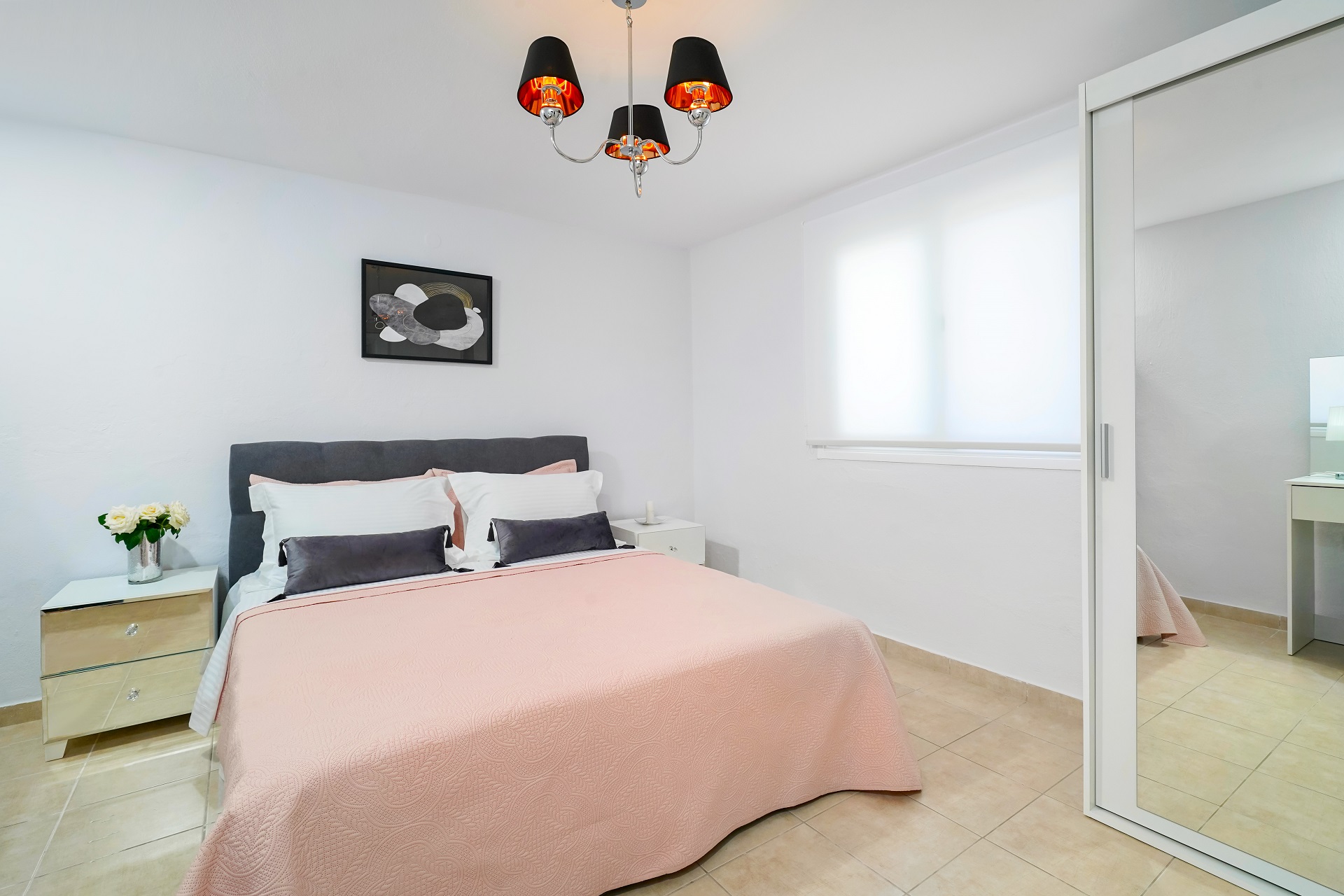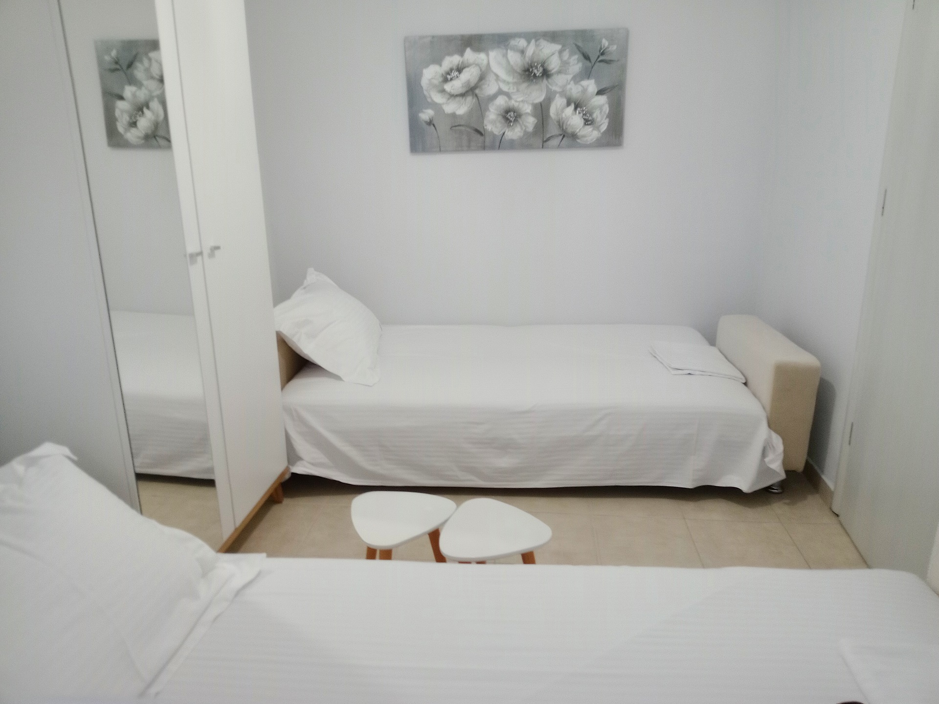 Το ισόγειο διαμέρισμα διαθέτει ένα υπνοδωμάτιο με διπλό κρεβάτι, ένα παιδικό δωμάτιο με δύο καναπέδες, κουζίνα και μπάνιο.