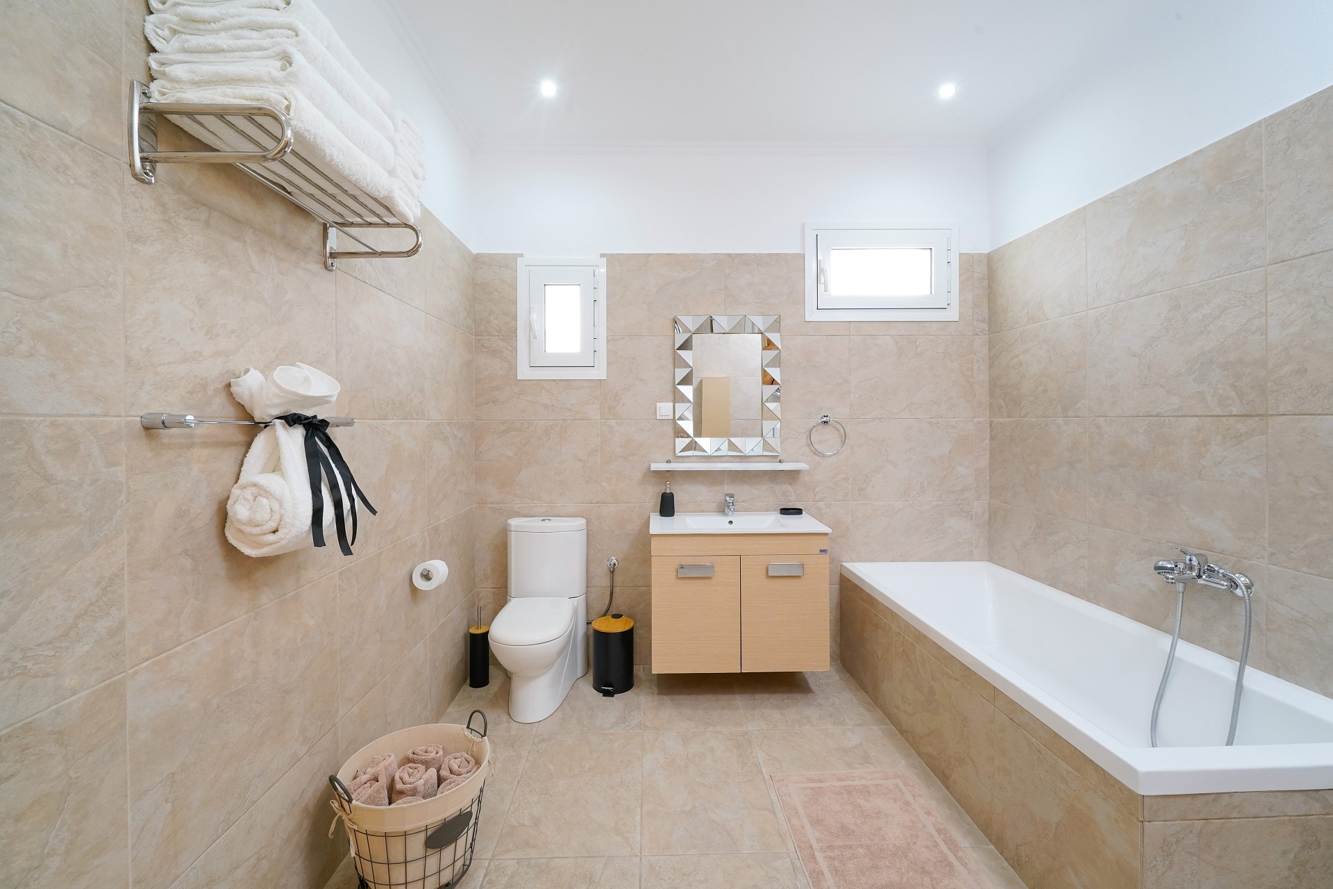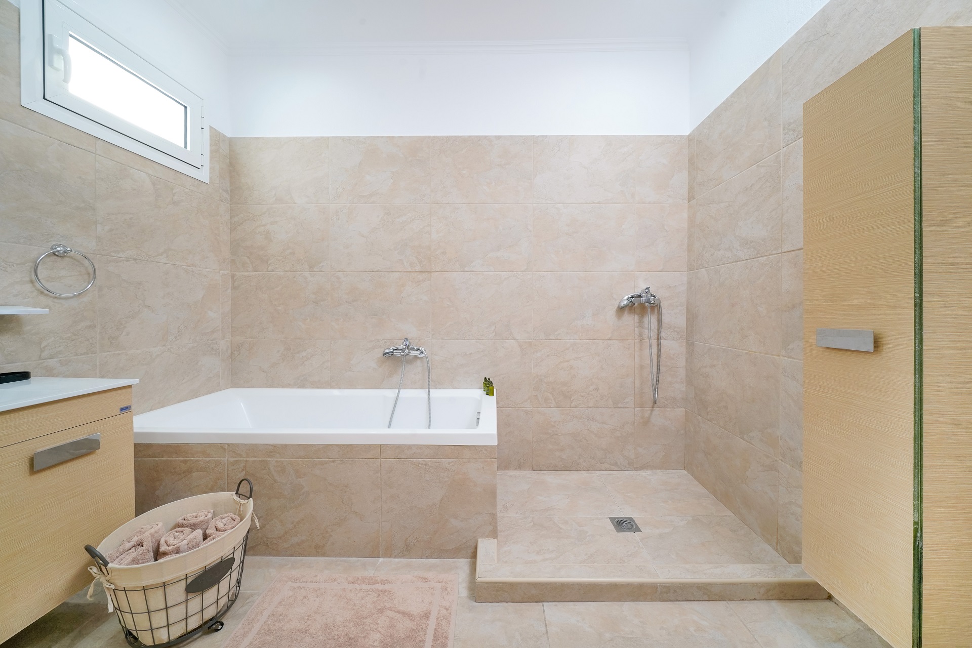 Και τα δύο μπάνια είναι εξοπλισμένα με ντους με μασάζ