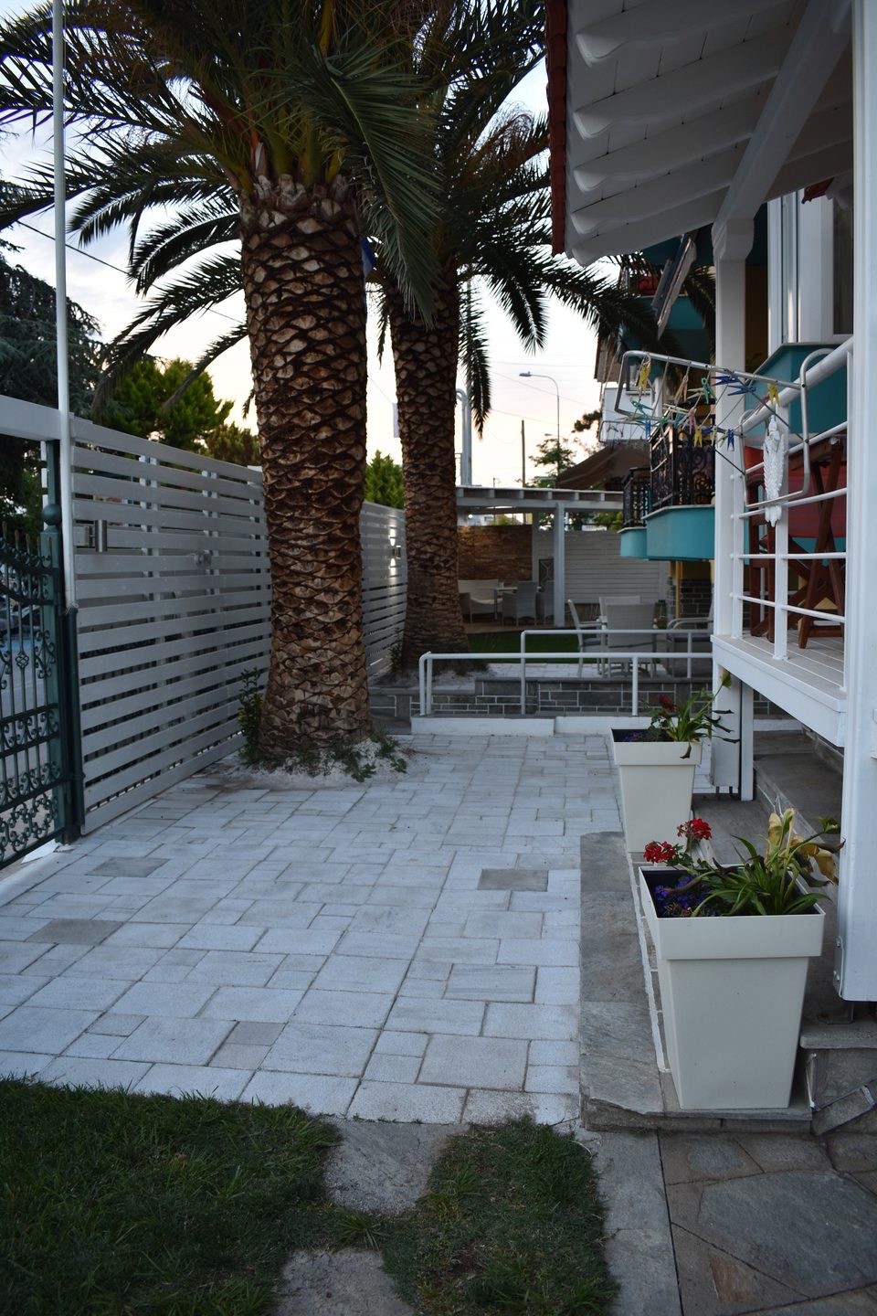Spacious rooms, courtyard full of green and trees, sandy beach only at 20 meters away